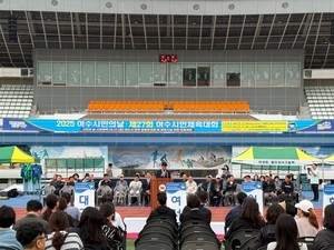 여수시는 여수시체육회(회장 명경식)와 함께 지난 17일부터 18일까지 이틀간 진남경기장에서 27개 읍면동 선수단과 시민 등 1만 5천여 명이 참여한 가운데 열린 ‘제27회 시민체육대회’를 성황리에 개최했다.이번 대회는 ‘2025 여수시민의 날 기념행사’와 연계해 추진됐으며 다가오는 2026여수세계섬박람회의 성공 개최를 위한 시민역량 결집과 화합의 장으로 마련됐다.17일 오전 10시 열린 개회식은 시립국악단·시립합창단·어린이 합창단의 합동공연을 시작으로 기수단 및 읍·면·동 입장, 시민헌장 낭독, 여수시민의 상·체육상 시상, 선수대표