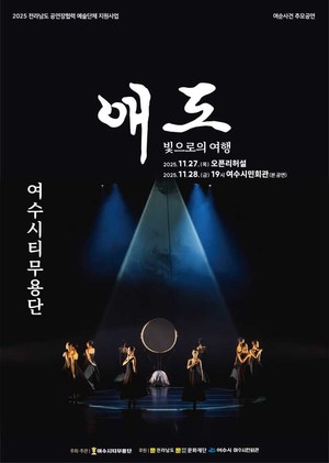 여수시는 여수시티무용단이 10.19 여순사건을 추모하고 희생자들의 넋을 기리는 창작뮤지컬·창작무용극 ‘애도-빛으로의 여행’을 무대에 올린다고 밝혔다.이번 공연은 2025 전라남도 공연장협력 예술단체 지원사업에 선정된 작품으로 오는 11월 27일과 28일 양일간 오후 7시 여수시민회관에서 개최된다. 전라남도, 전남문화재단, 여수시가 후원해 완성도 높은 공연을 선보일 예정이다.‘애도-빛으로의 여행’은 여순사건의 아픔을 예술로 승화시킨 작품으로, 창작뮤지컬과 창작무용극의 조화로운 결합을 통해 묵직한 감동을 전달한다. 여수시티무용단은 섬세