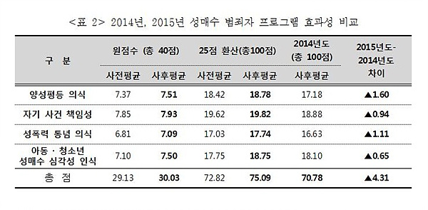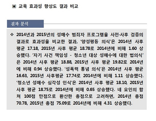2016년 성폭력, 성매수자 재범방지교육 프로그램은 무엇보다 성범죄 대상이 아동‧청소년인 만큼 교육생들에게 성에 대한 올바른 가치관을 확립시키고, 성폭력 범죄의 심각성에 대해 인식시켰다.