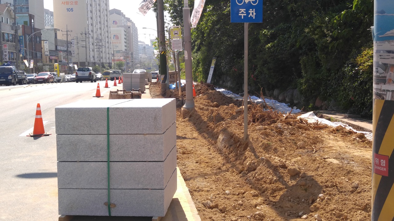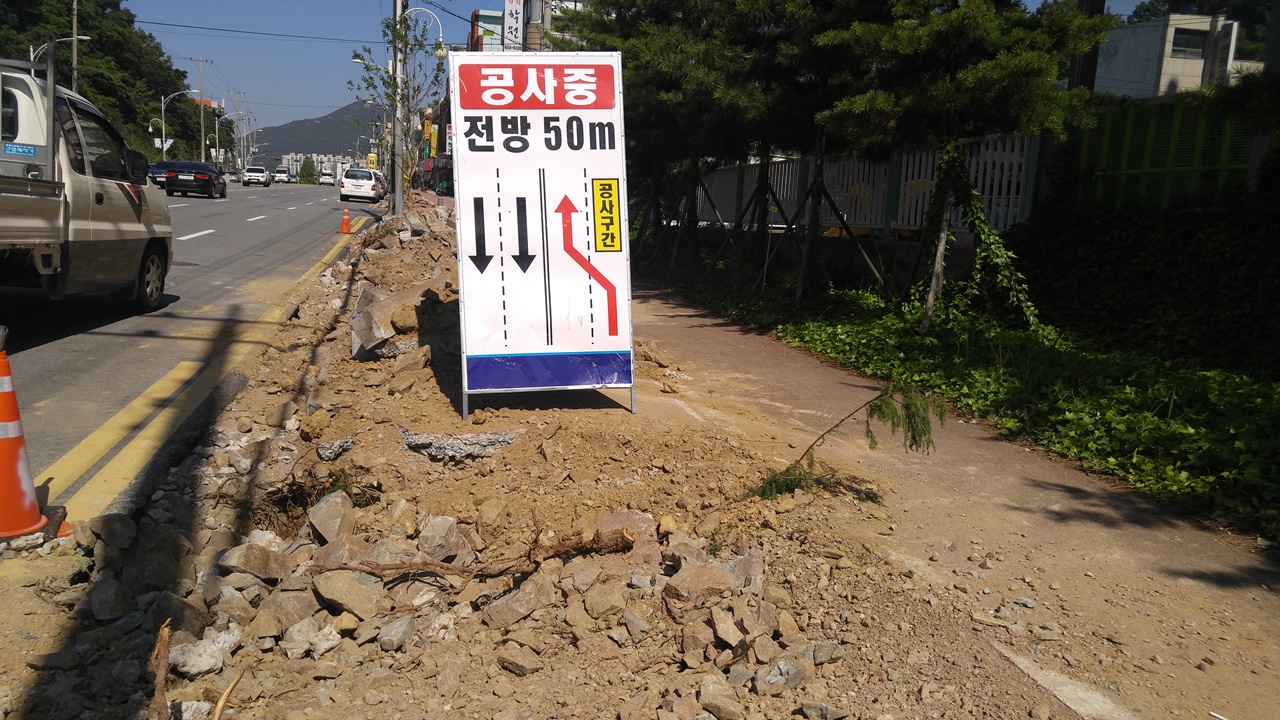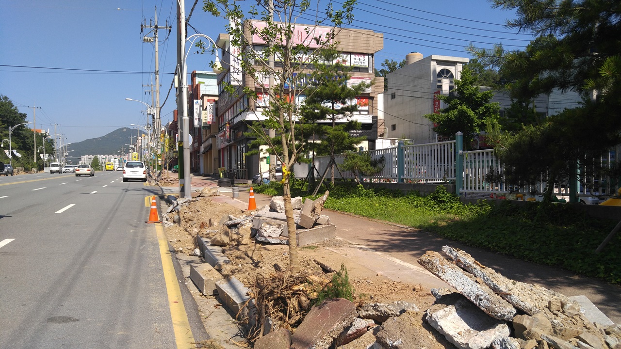 고목 잘리고, 도로는 파이고...이런 공사 참 나빠요