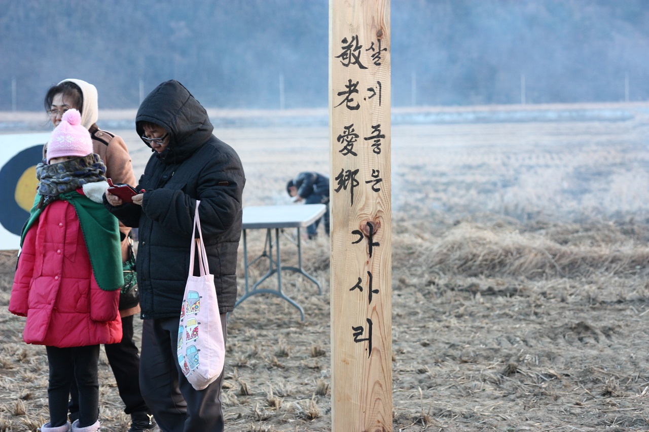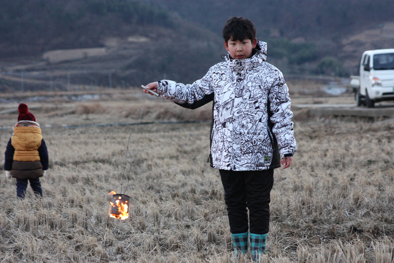 이날 다채로운 행사가 열렸다. 배고팠던 어린 시절을 회상하는 밀떡구워먹기, 연날리기, 쥐불놀이, 볏짚에 소원태우기, 활쏘기등등. 마지막 하이라이트를 장식한 달집태우기는 장관을 이뤘다. 새끼줄에 소원지를 매단 달집에 횟불을 들이대자 활활 타오른 불은 불춤을 췄다. 마치 나라의 액운을 삼키듯 한참동안 불놀이에 넋을 잃었다. 액운은 영영가고 저마다의 소원은 꼭 이루어지리라.