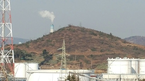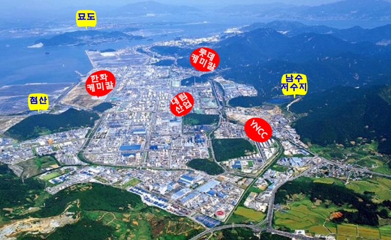 여천NCC 공장과 롯데케미컬 공장 산이 민둥산으로 변해버렸다.(이해를 쉽게 하려고 각 회사 옆 산이름을 회사이름을 붙혔다.)