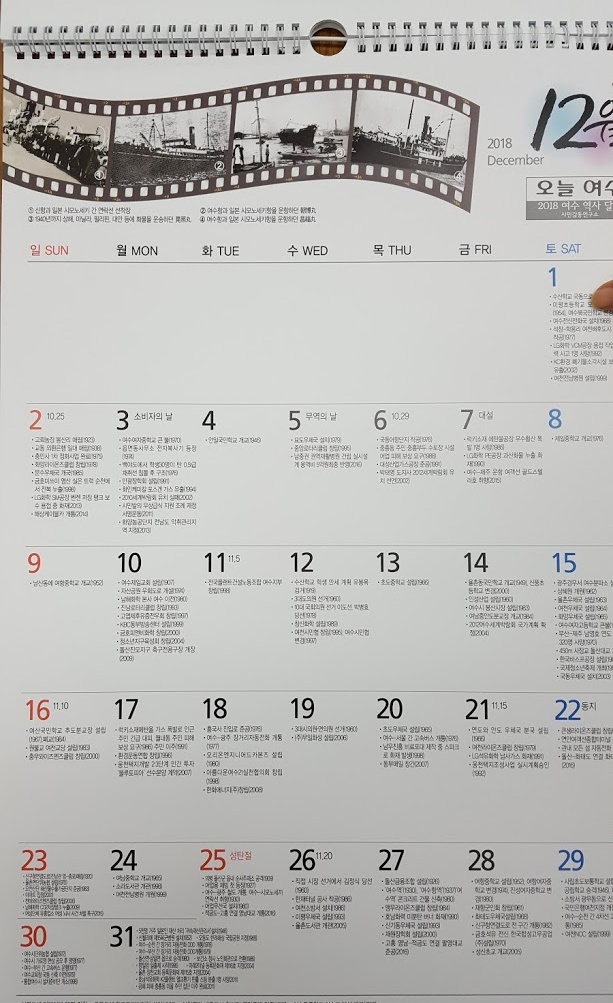 “그렇다. 1년 동안 역사달력을 활용하고, 또 시민들로부터 제보를 받아서 보완하고 수정하여 2019년에 발행하면 더 나아질 것이다. 앞으로 매년 진화된다. 특히 역사달력에 그치지 않고, 인터넷으로 참고할 수 있는 방법을 고민하겠다. 가능하다면 매년 새로운 스타일의 여수연감을 ‘시민감동연구소’에서 발행하는 것도 검토 중이다. ‘역사를 잊은 민족에게는 미래가 없다’는 생각으로 기록이 여수의 힘이 되었으면 좋겠다.