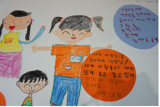 박서영 어린이(7세)는 “세게(세계)박람회를 준비하는 선생님! 세게 사람들이 재미있게 놀고 갈 수 있게 멋지게 만들어 주세요”라고 적었다.
