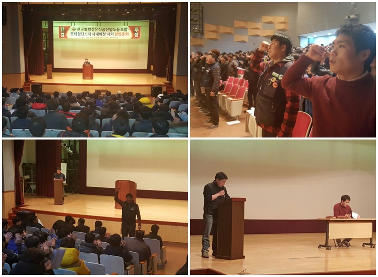 “2년 전 삼성SDI가 롯데케미칼에 매각되면서 롯데첨단소재로 출범했다. 그동안 이곳 정규직 역시 삼성의 무노조경영으로 조합을 만들지 못해 노사협의회 형태로 운영되어 조합가입이 원천 차단되었다. 이후 정규직이 노조를 만든 것을 보면서 학습을 통해 2월 26일 노조가 탄생됐다.”