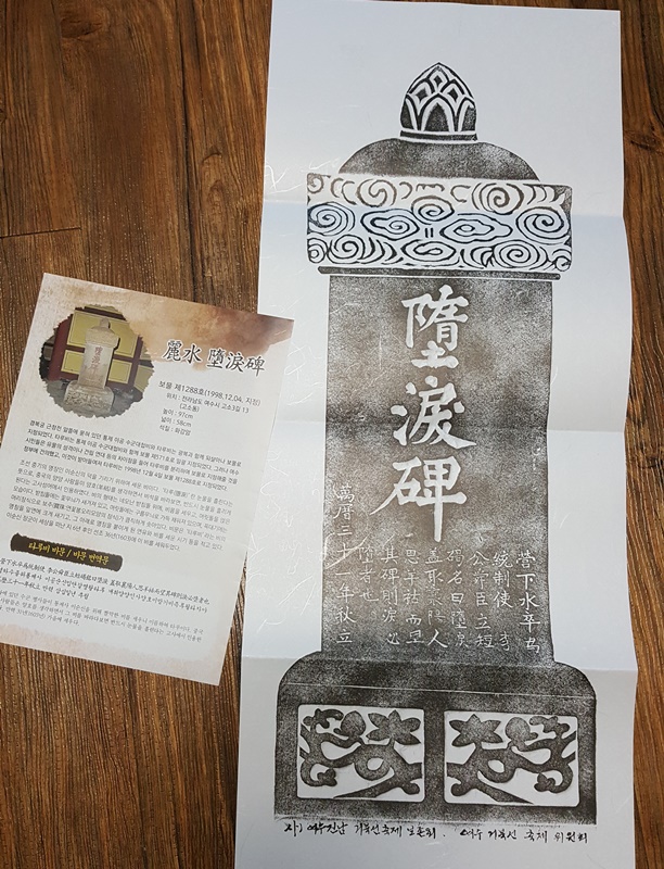 탁본이 담긴 봉투 안에는 여수 타루비가 그 동안 없어졌다 사라지고 보물지정도 변경되는 우여곡절의 역사가 적힌 안내문도 함께 들어있었다.