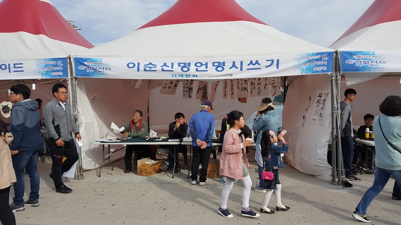 여수거북선축제가 열리는 5일 종포해양공원의 한 천막에서는 보물인 여수 '타루비' 탁본 3천부가 관광객들에게 무료로 배부됐다.