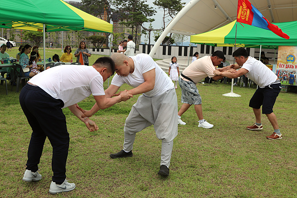 본부석에 몽골전통 음식인 '올버브'와 '쇼호르' 등을 준비해놓고 참석한 모든 남자들의 힘을 겨루는 '부흐'가 시작됐다. '부흐'는 몽골 전통씨름 경기로 한국 씨름처럼 상대방의 균형을 깨트려 넘어뜨리면 승리한다.