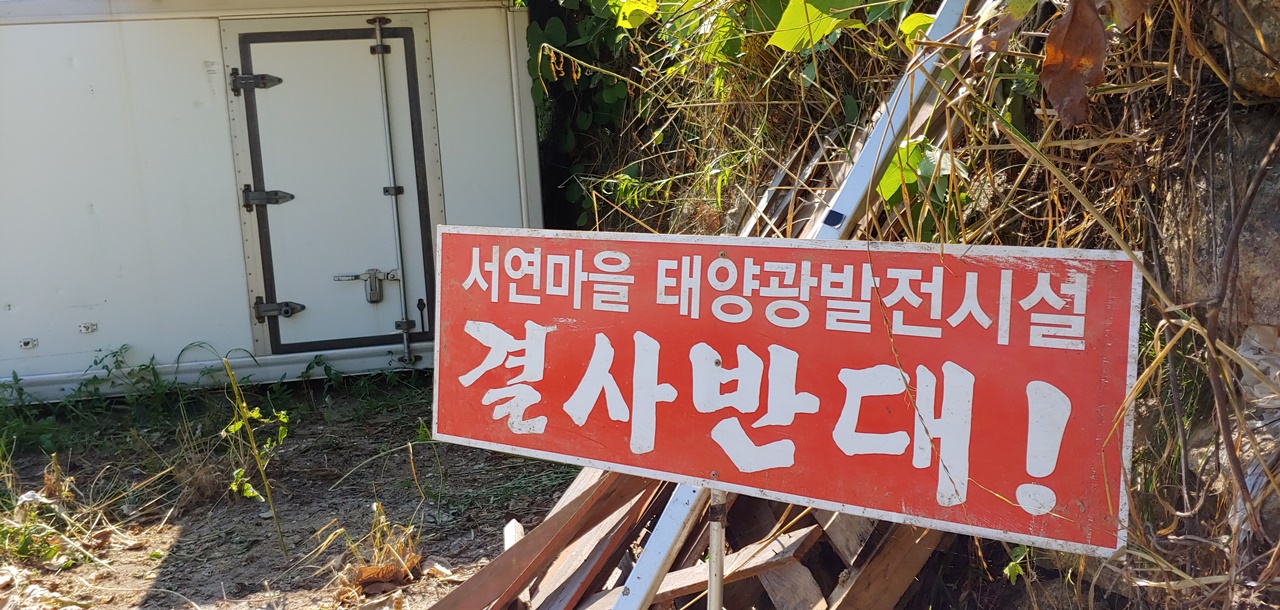 문제가 불거진 곳은 화양면 이목리 서연마을. 이곳 주민들은 지난해 12월부터 마을에 들어서는 태양광발전시설 저지투쟁에 나서고 있다. 50여 세대가 사는 이곳은 60~70대 노인들이 대다수이지만 마을을 지키기 위해 외로운 투쟁을 해오고 있다. 마을에 태양광이 들어온다는 사실을 뒤늦게 알고 시를 상대로 태양광 허가를 취소해 달라는 소송을 제기했다. 이후 지난 6월, 1심 소송(태양광개발행위허가처분취소 소송. 이하 태양광 소송) 판결에서 승소했으나 7월 여수시가 항소에 했다. 주민들이 강하게 반발하고 있다.