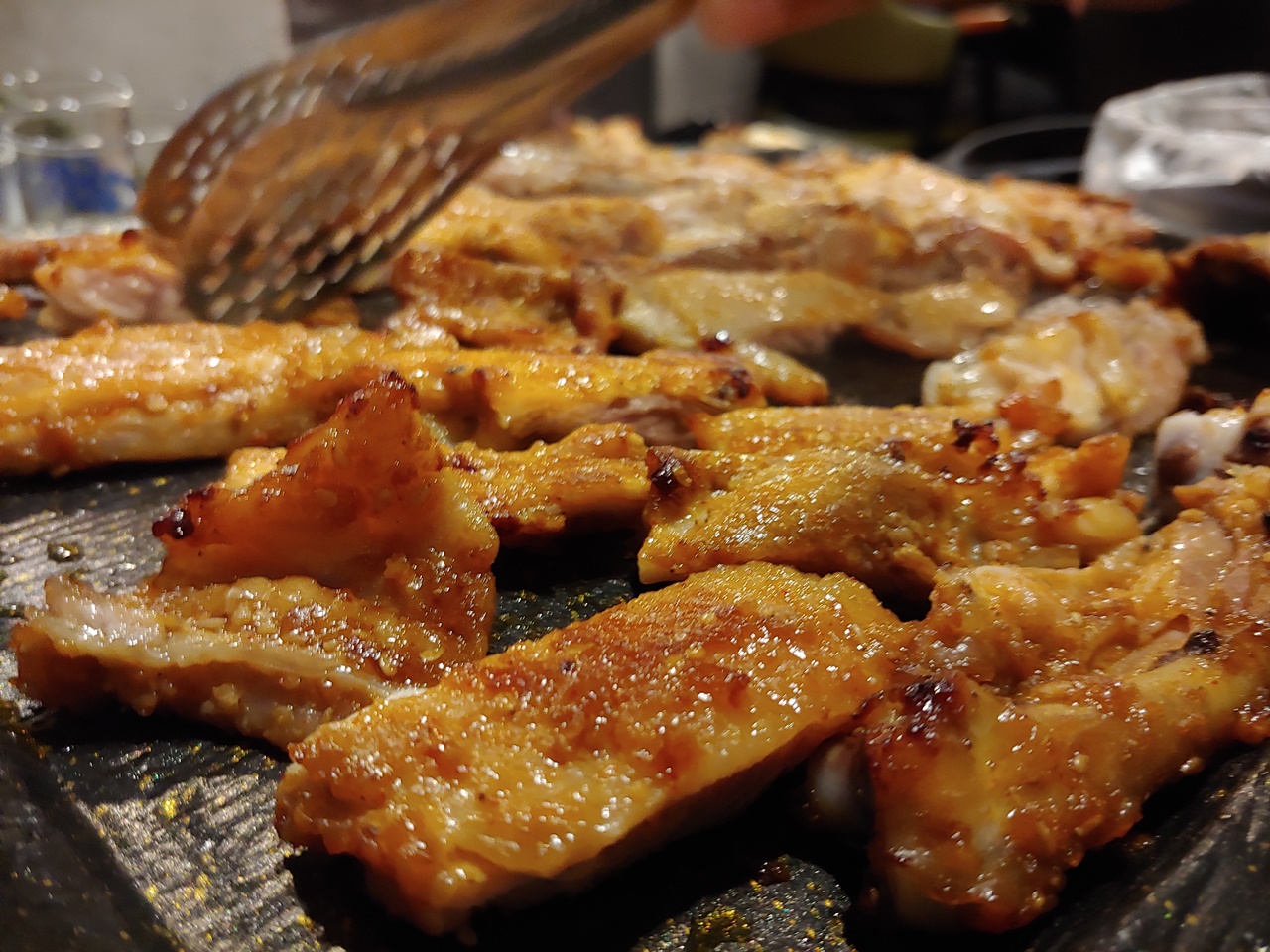 기자가 직접 닭구이를 시켜봤다. 두 번의 초벌구이를 거쳐 나온 닭구이를 데워 먹으니 굽는 수고로움도 없다. 옷에 냄새가 베이지 않아 좋다. 노릿노릿 익은 닭구이를 명이 잎에 싸먹으니 감칠맛이 그만이다. 이후 된장찌개 갈비살을 시켰는데 햅쌀로 지은 듯 밥맛이 끝내줬다. 왜 격이 있는 밥상인지 그 이유를 알 것 같다. 하지만 무한리필 셀프바가 있었지만 계속 종업원을 불렀던 것은 옥에 티였다.