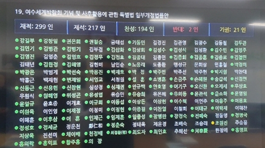 이용주 국회의원(민주평화 여수 갑)이 해양특구 내 국가 및 지자체가 시행하는 시설 조성 근거 마련을 주요골자로 대표 발의한 여수박람회법 개정안이 국회 본회의를 통과하며 엑스포장 사후 활용에 청신호가 켜졌다.