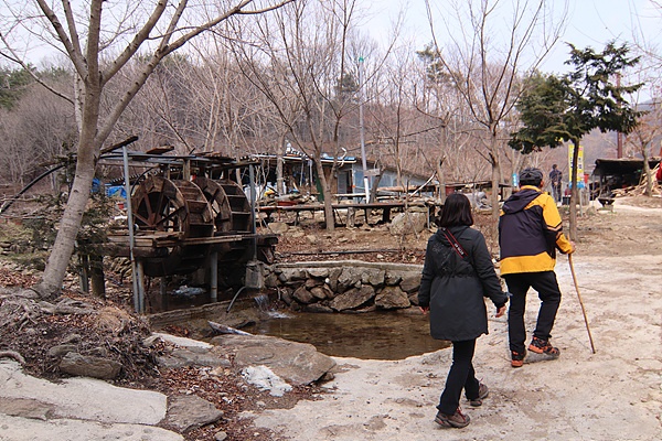 '지경터'에는 양쪽을 오가는 사람들이 잠시 휴식하며 식사를 하거나 막걸리를 마시는 보리밥집이 있다. 현재는 위아래 두 개의 보리밥집이 있다. 원조 보리밥집이 있는 곳으로 가기 위해 다리를 건너기 직전 김배선씨가 계곡물 주변 산죽이 우거진 곳을 가리키며 설명을 했다.