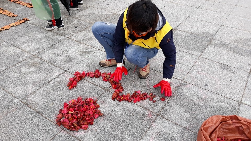 박 대장은 “특히 오동도는 관광객도 많기 때문에 퍼포먼스를 통해 그들에게도 불가사리의 유해함을 구체적으로 알려주고 싶었다. 오늘 주제가 ‘상괭이를 보호합시다’ 인만큼 그림도 상괭이를 그려놓았다”고 설명했다.