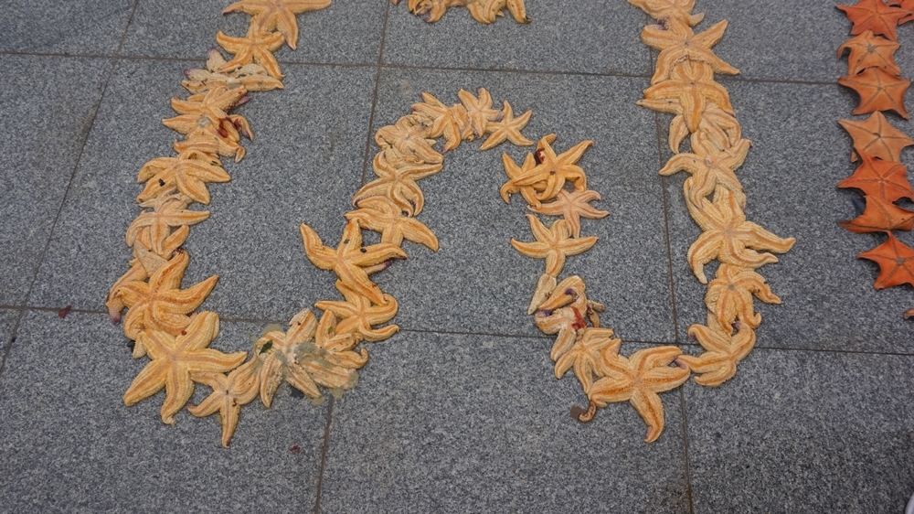 벌써 4년째 개최하고 있는 불가사리 축제지만 잡히는 양은 매년 비슷비슷하다. 그마저 이들 봉사대와 시민들이 꾸준히 해양정화활동을 실천하지 않았다면 훨씬 심각해졌을 것이다. 퍼포먼스 문구가 완성된 후에도 잡힌 불가사리는 꾸준히 날라져 왔다.