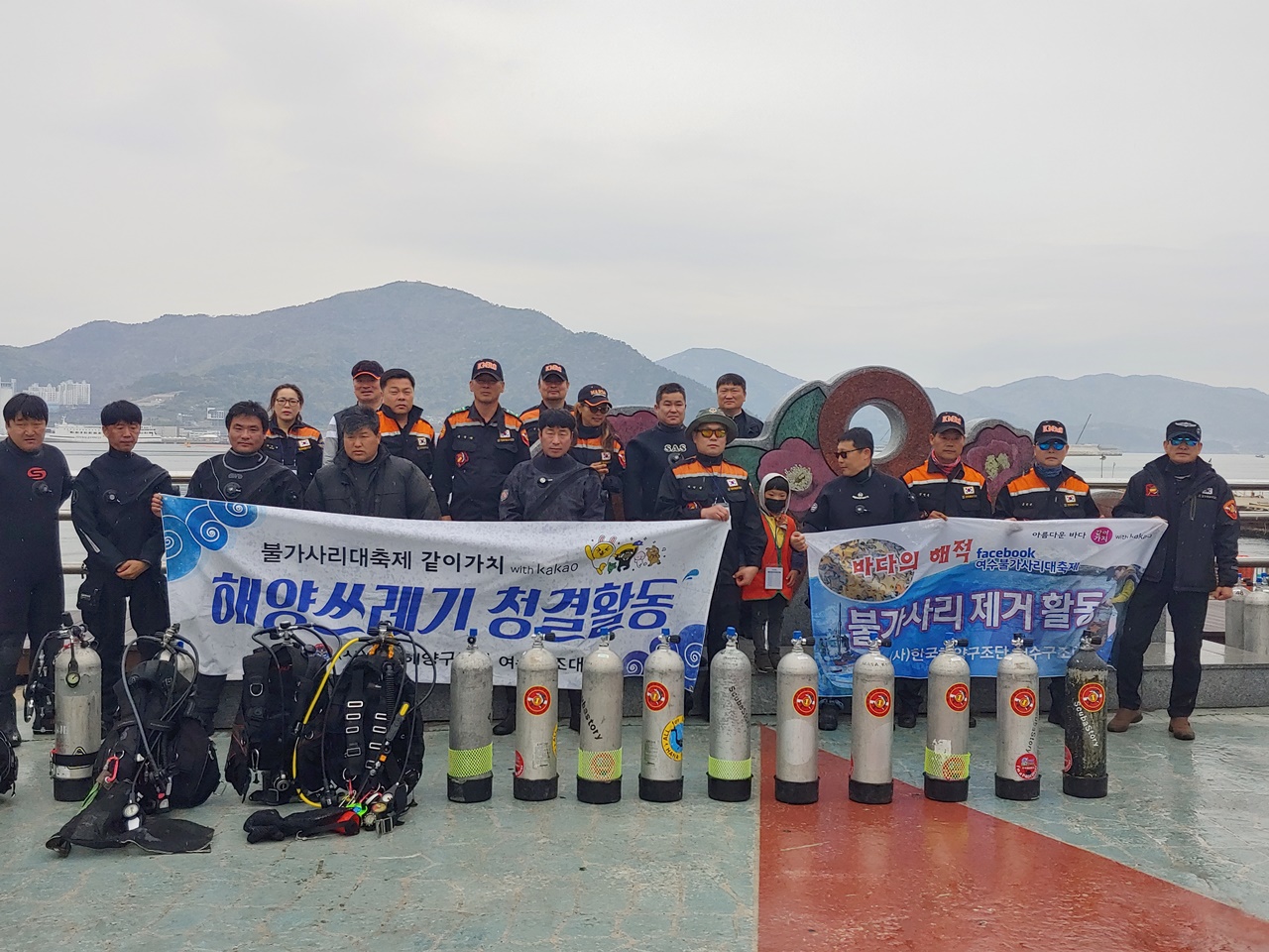 14일 오동도에서 펼쳐진 행사는 해양환경인명구조단 여수구조대가 주최하고 있습니다. 이 단체의 캐치프레이즈는 ‘같이 가치’입니다. 아울러 모두모아봉사대, 동여수노인복지관, 진달래마을, 무지개음악단, 여천NCC(주), 여수남동화력발전, 진성여중 등 15개 단체에서 200여명이 참석했습니다. 해마다 순수봉사 단체의 참여가 점점 늘어나고 있습니다.