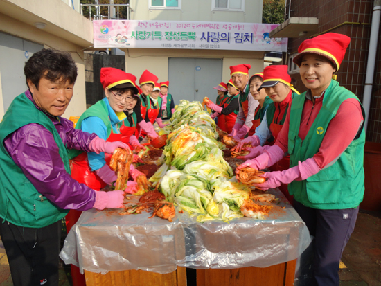 여수시 여천동 남녀 새마을협의회(회장 이춘길서정례)는 지난 29일 주민센터 광장에서 ‘사랑가득 정성듬뿍 사랑의 김치 나눔’ 행사를 가졌다.