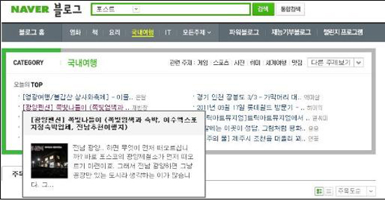 지난 9월 정식 출범한 여수엑스포 여행마니아체험단 2기의 포스팅 12건이 네이버 국내 여행코너의 ‘오늘의 TOP’에 선정되는 등 큰 호응을 얻고 있다.