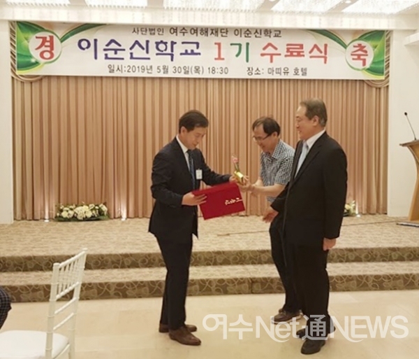 사단법인 여수여해재단(이사장 강성천)에서 운영하는 여수이순신학교 제1기 수료식이 30일 마띠유 호텔에서 열렸다.