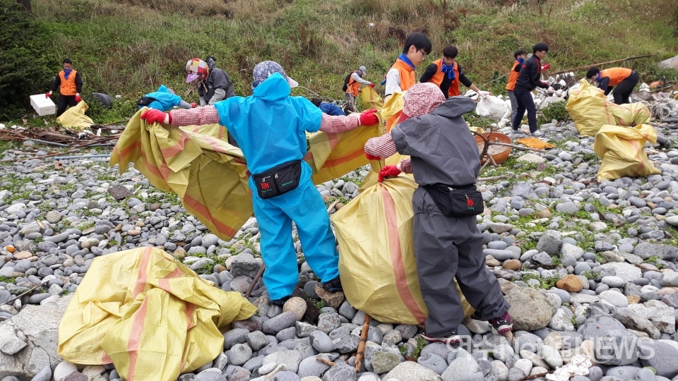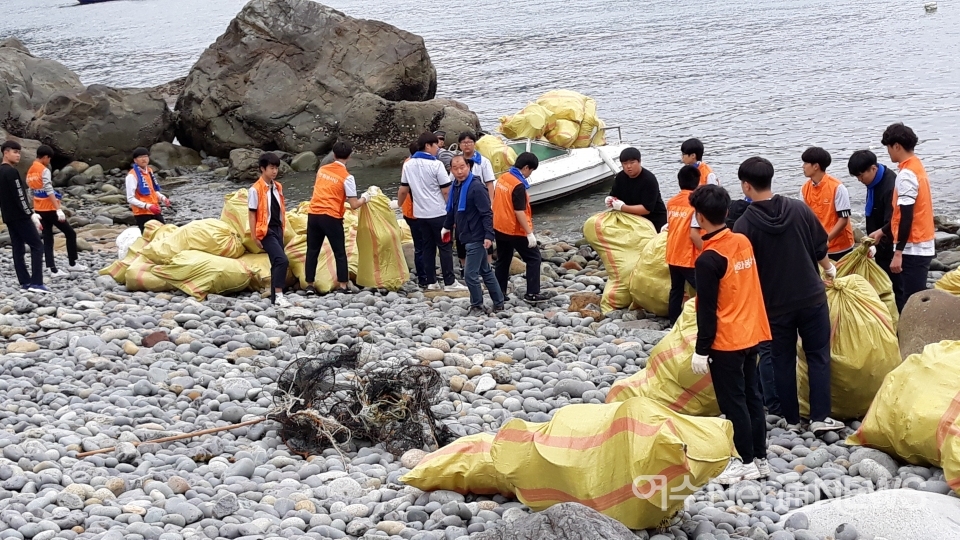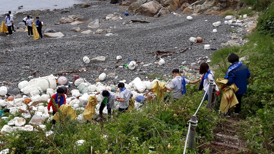 산더미처럼 쌓인 마대자루 앞에서 돌산해양과학고 1학년 이수빈 학생은 “거문도에서 중학교를 다녔지만 그곳은 자원봉사자가 자주 청소를 하기 때문에 이렇게 많은 쓰레기는 본 적 없다”고 놀라워했다.