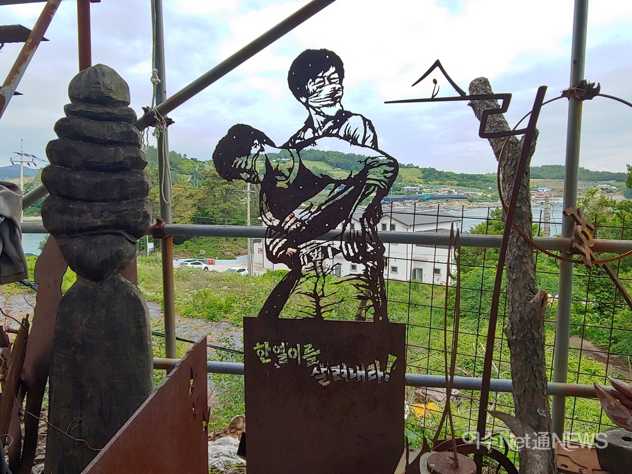 “4~5년 전 김해시에서 봉화마을을 비롯 십여군데 마을에 자음과 모음으로 마을을 꾸미기 작업을 했지. 그런데 공사계약에 김해시장이 도장까지 찍었는데 문체부에서 잘라버렸어. 그 이유가 내가 블랙리스트였던 거야. 세월호 진상규명하라 외치고, 민주적인 후보를 지지했더니 문화예술계 블랙리스트를 작성해 지원금을 끊은 게 상식적으로 말이 되나.”