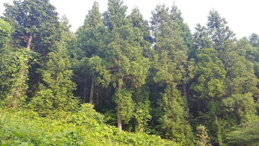 하루 종일 장마 비가 오는 날, 숙소 위쪽의 임도를 30여 분 걸었다