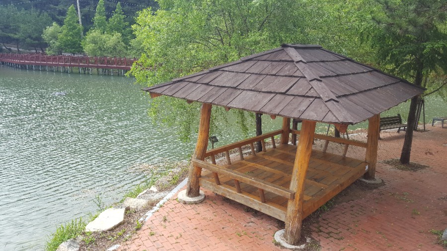 호수의 정자에서 쉬면서