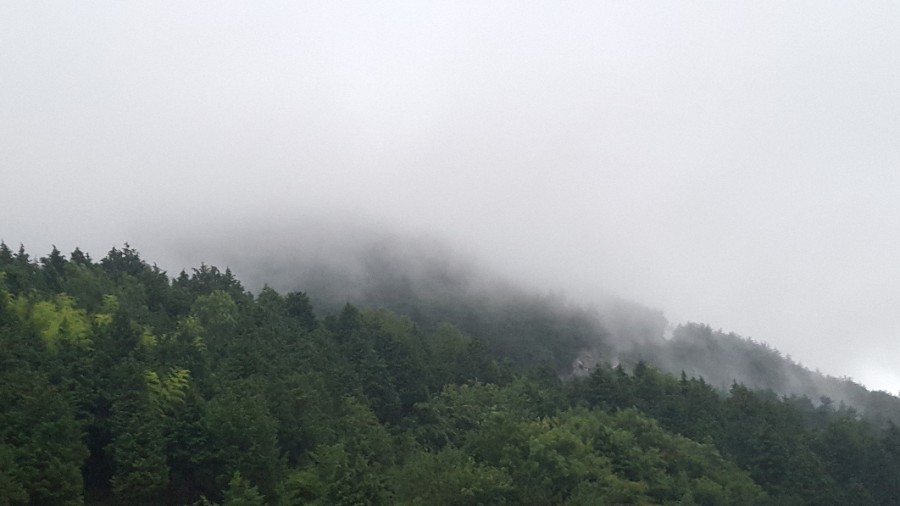안갯속에서 시야는 잘 보이지 않고 계곡물소리, 빗소리만 요란하다. 문득 혼자라는 생각이 든다. 작은 소리에 놀란다. 곧 더 높이 올라가는 것을 멈추고 시멘트로 포장된 임도를 천천히 내려왔다.