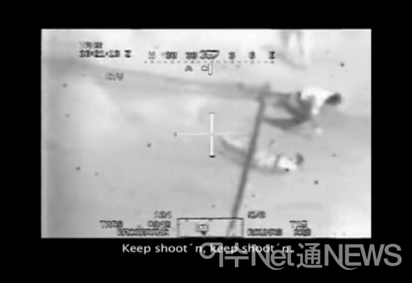 목숨을 잃지 않은 이라크인 한명이 상채를 일으키는 장면도 헬기 조준 스크린 화면에 나타났다. 얼마 후 검은색 봉고 차량이 달려와 아파치 헬기 기관포에 맞아 숨진 사람들을 싣고 있었다.