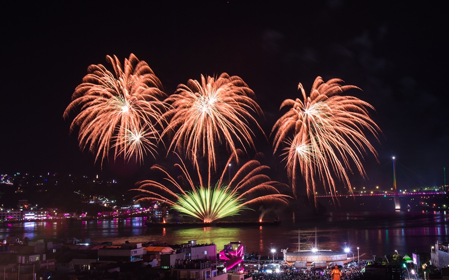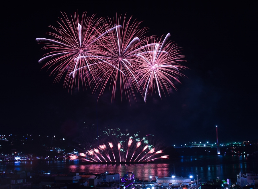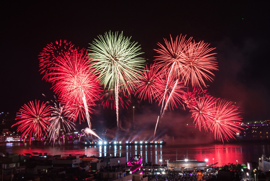 축제의 하이라이트인 불꽃쇼는 저녁 8시 30분부터 9시 10분까지 1, 2부로 나뉘어 40분간 펼쳐진다.