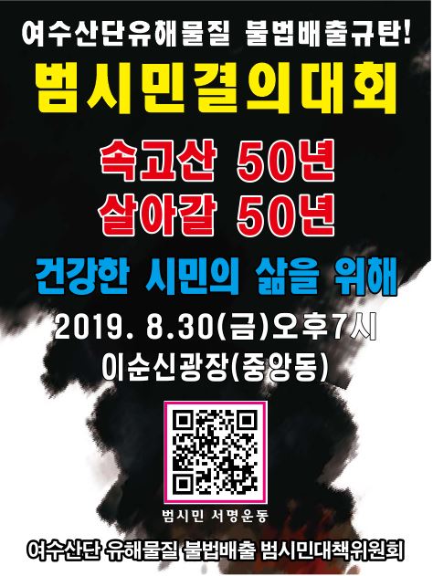 여수산단 유해물질 불법배출 범시민대책위원회(이하 여수산단시민대책위)가 30일 오후 7시, 중앙동 이순신광장에서 ‘여수국가산단 기업들의 유해물질 측정값조작 및 불법배출을 규탄하는 '여수산단 유해물질 불법배출 규탄 제2차 범시민결의대회’(이하 범시민결의대회)를 개최한다.