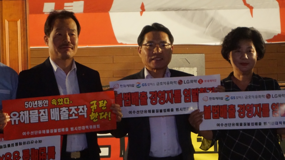 정 의장은 “기업들은 책임경영과 윤리경영을 이야기하면서 뒤에서 시민들을 속이고 유린해왔다. 이렇게 되도록 운영체계를 방치하고 관리감독을 소홀히 한 정부와 전남도, 여수시 모두 책임을 피할 수 없다. 그러나 그 누구도 잘못했다고 사과하지 않고 있다. 오히려 기업들이 ‘다른 기업들도 마찬가지’라며 큰소리치고 있다. 기업들은 즉시 시민 앞에 무릎꿇고 사과하고 재발방지대책을 내놓아야 한다”고 말했다.