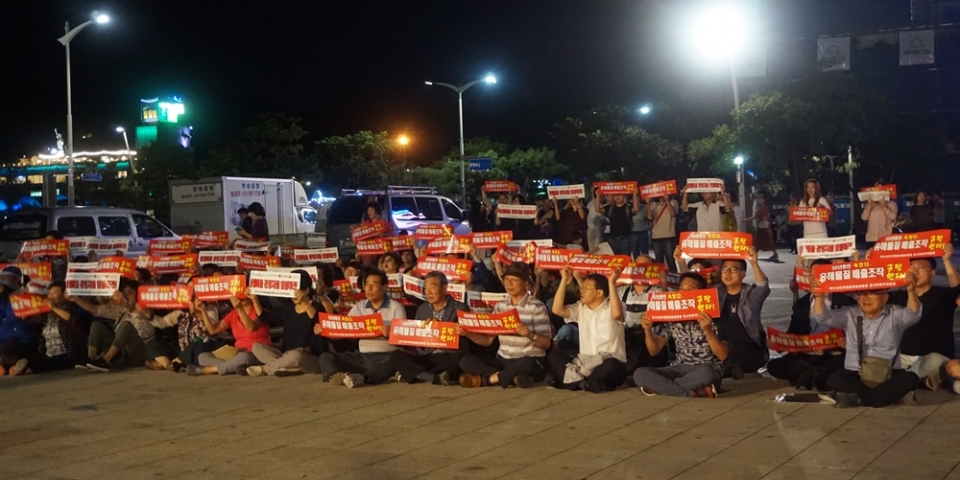 전남지역 49개 단체가 참여한 ‘여수산단 입주업체 유해물질 불법배출규탄 범시민결의대회’가 30일 오후 7시 이순신광장에서 열렸다.