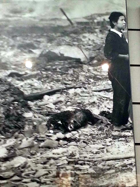 점차 공습이 심해지고 소이탄이 떨어지며 사이렌이 울리면 방공호에 숨었다가 나오기를 몇 번 반복하던 8월 9일, 커다란 미군 비행기 B29가 날아와서 원자폭탄을 투하했다. 번쩍하고 빛이 나던 순간 천지가 진동하는 폭음소리가 들렸다.