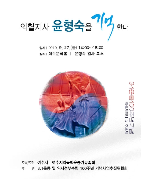 3‧1운동 100주년을 맞아 27일 오후 2시 여수문화홀에서 열리는 윤형숙 열사 학술대회는 ‘의혈지사 윤형숙을 기억한다’ 라는 주제로 발제와 토론이진행될 예정이다.