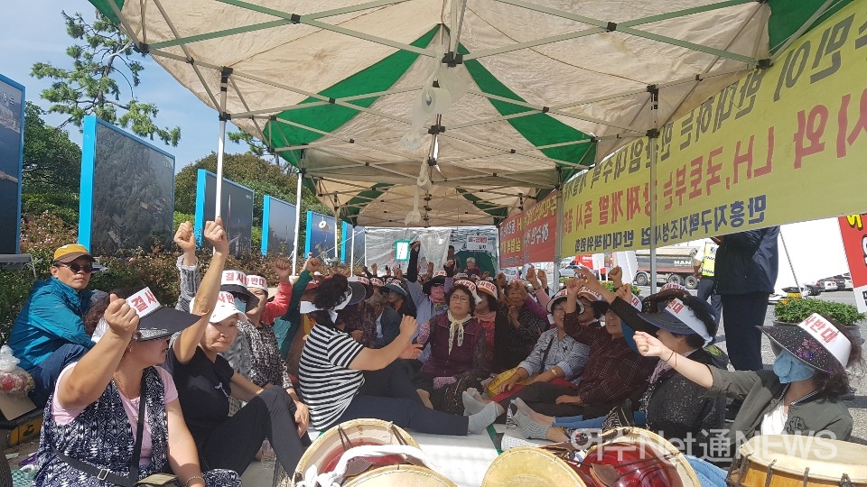 만흥지구 택지조성사업 반대대책위원회(위원장 김홍수)는 150 여명의 주민들은 지난 25일 오전 10시를 시작으로 오후 3시까지 장시간에 걸쳐 여수시청 앞에서 집회를 열고 LH와 여수시를 성토했다.