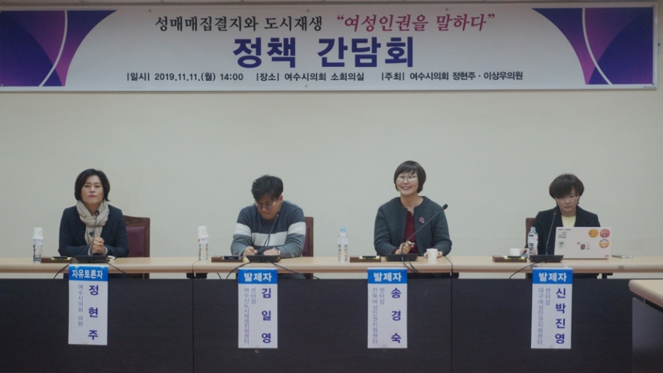 11일 오후 2시 여수시의회 소회의실에서 여수시의회 정현주 의원과 이상우 의원이 주최한 참여형 정책간담회가 ‘성매매집결지와 도시재생, 여성인권을 말하다’ 라는 주제 아래 열렸다.