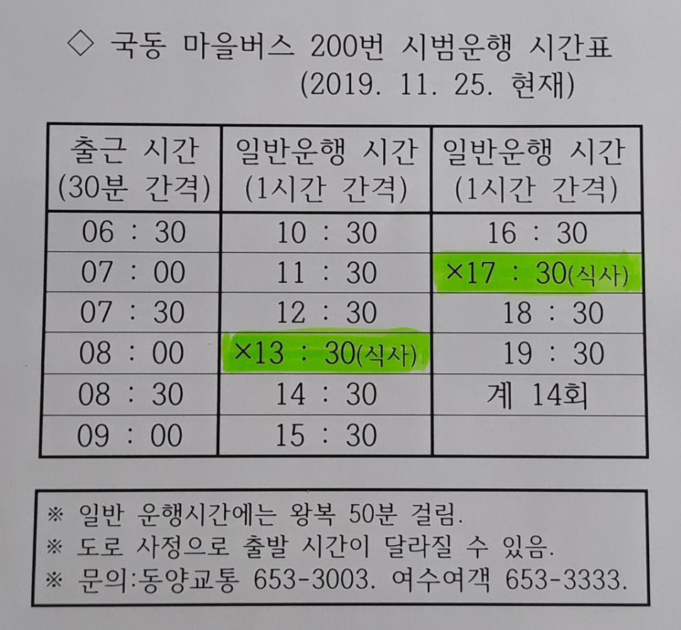 1주일이 지났는데도 시간표를 아는 사람은 거의 없다. 버스승강장에 시간표가 없기 때문이다. 본 기자도 취재차 해태아파트에서 무작정 2시간을 기다렸다. 17시 30분 버스가 기사 식사 시간이어서 운행하지 않음을 몰랐기 때문이다.