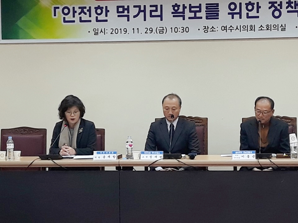 29일 오전 10시 반 여수시의회 소회의실에서 ‘안전한 먹거리 확보를 위한 정책개발간담회’가 열렸다.