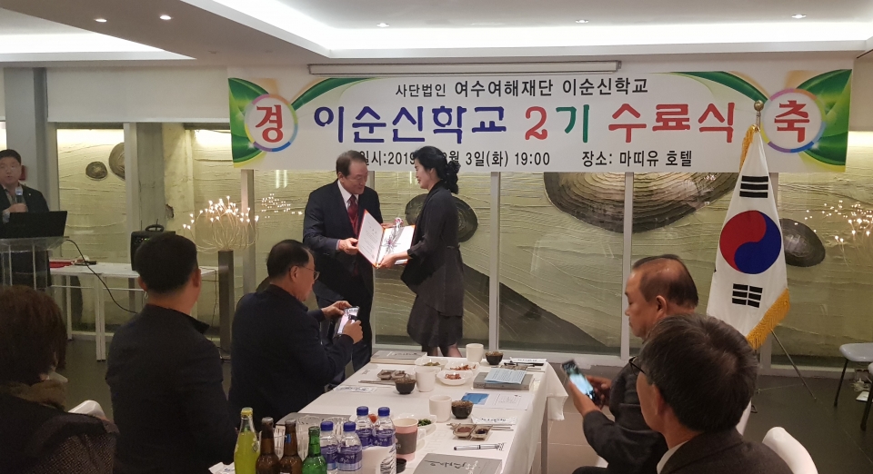 사단법인 여수여해재단의 여수이순신학교(교장 이삼노) 2기 교육과정은 지난 9월 17일 개강식을 시작으로 12주 동안 매주 1회 두 시간씩 이순신 전문 학자와 전문가들로 부터 강의를 들었으며, 통영 한산도 등 현장 답사코스도 마쳤다. 지난 12주 동안 매주 화요일 저녁 7시부터 두 시간 강좌를 진행해 왔다.