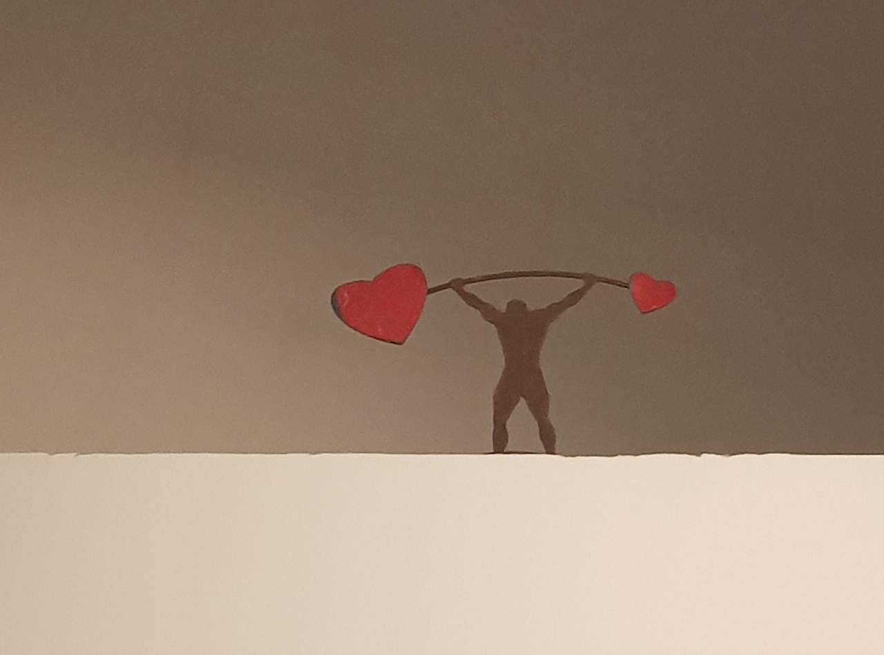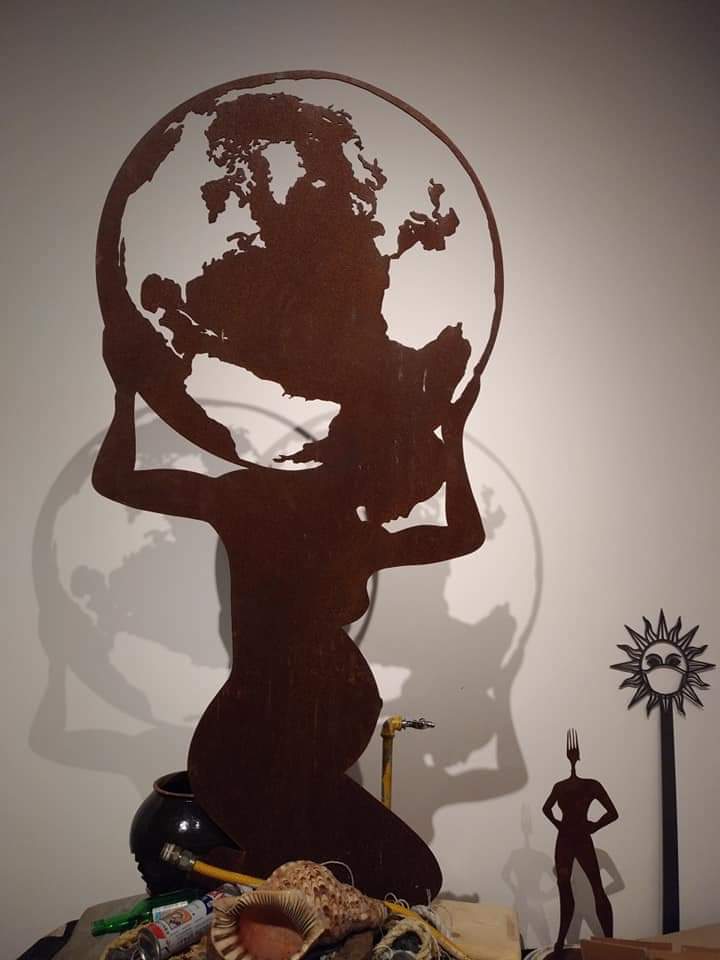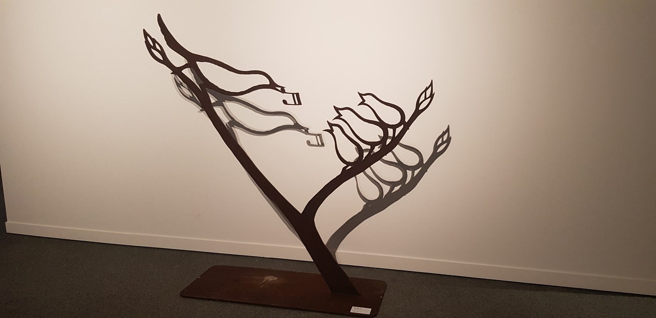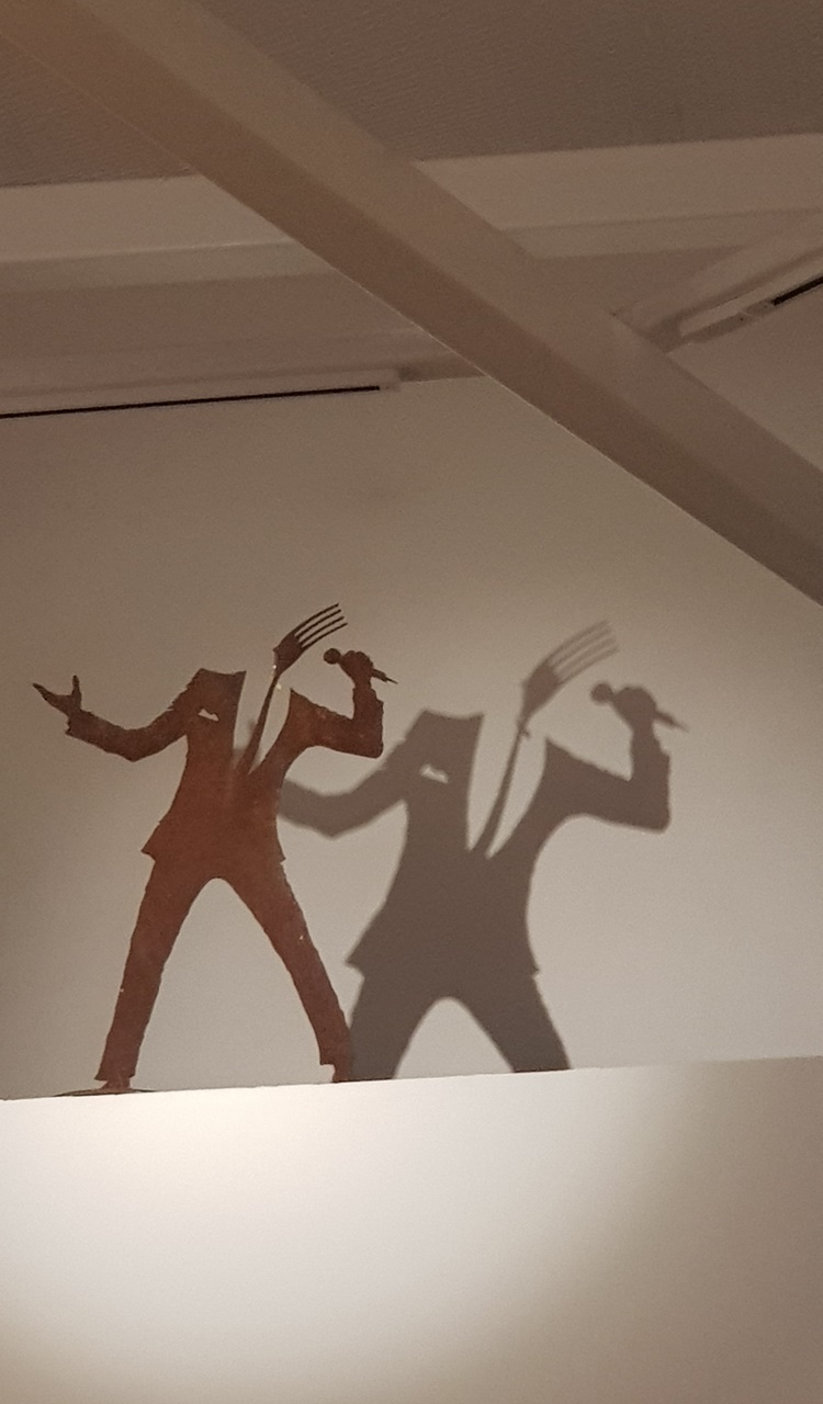 불쑥불쑥 전시장 칸막이 위 공중에 나타나기도 하고, 담장이 걸리는 것 같기도 하고, 바닥에 널부러져 있기도 하고, 그림자를 일부러 비춰주려고 벽 앞에 우두커니 서 있기도 하다. 그야말로 전시장 곳곳이 전시공간이다.