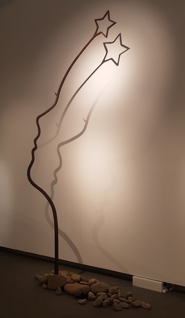 여기 이렇게 초대받아 전시되니 그의 설치 작품들에서 색다른 묘미가 있다. 그의 작품들이 걸개 그림부터 시작한 태생적인 DNA 탓인지 주로 야외에 걸리거나 ‘설치’되어 있다.