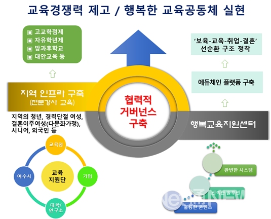 여수 교육이 지향해야 할 가치는 ‘교육 경쟁력 제고, 행복한 교육공동체 실현’이다. 성적 위주의 경쟁교육에서 지성, 감성, 인성의 균형 있는 발전을 촉진하는 교육으로 전환하여 미래 사회에 필요한 창의적 사고력과 협력의 리더십을 기르는 것이다.