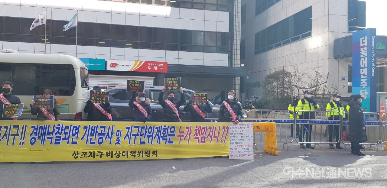 이날 상포비대위 회원들은 상포지구의 철저한 진상규명을 촉구하며 기습시위를 벌였다. 민주당 당사 앞에서 상포지구 비상대책회원들의 방송소리가 당사에 쩌렁쩌렁 울려 퍼졌다. 이들은 준비해온 성명서를 낭독하며 시위를 이어갔다.