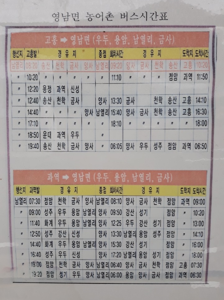 고흥군 영남면 농어촌버스 시간표