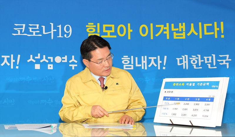 여수시는 정부와 전남도의 추경 매칭사업에서 제외되거나 ‧누락된 시민들을 추가 발굴한 후 중위소득 일정비율을 적용하여 긴급지원대상자를 선별할 방침이며 중복 지원은 배제했다고 밝혔다.