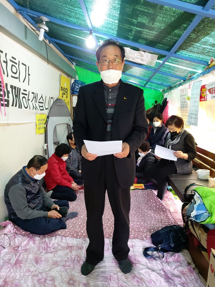 26일 유웅구 상인회장은 보도자료를 통하여 ”어떤 이유가 되었든지 여수시는 상인들을 300일까지 방치하는 것은 너무한 처사며, 그보다 더 억울한 점은 이미 한전과 여수시에 공과금을 납부하였음에도 불구하고 대표이사에게 공과금 등을 납부하라는 부당한 요구를 상인들에게 강요한 채 이를 따르지 않으니 일체의 소통의 창구를 폐쇄하고 70-80대 노인과 여성들 삼십여명을 야외에 방치하였다는 점이다“라고 분노하였다.