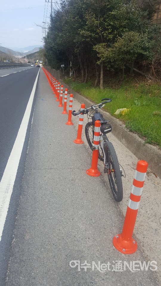이번에는 '상암로' 자내리 앞 도로변에 도무지 쓸모없는 '봉'을 박아서 오히려 갓길을 이용하는 자전거 통행에 어려움만 가중시키고 있어 시민들 불만이 크다.