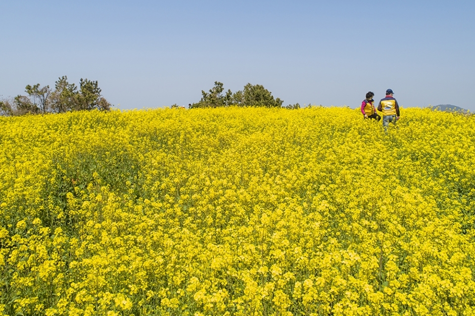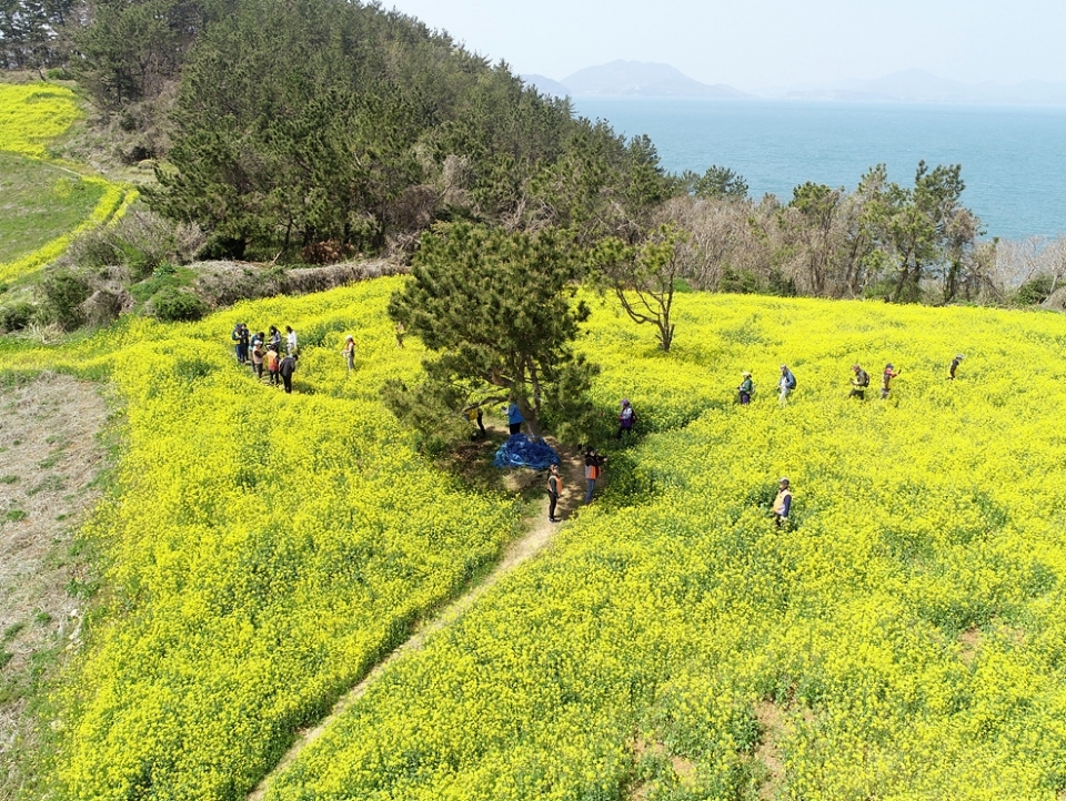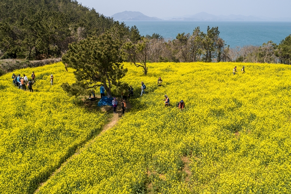 이날 이들이 해양정화활동 장소로 택한 화태도 갯가길 유채꽃밭은 올해 처음 조성됐다.