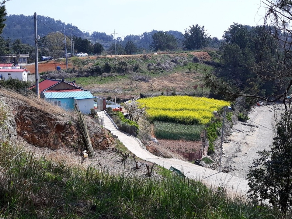 지난 2018년 칡넝쿨 투성이던 이 땅을, 여수갯가길 회원 예닐곱 명이 다섯시간 넘게 예초기로 칡넝쿨을 제거해 장소를 확보했다. 칡넝쿨은 자라는 속도도 매우 빠르기 때문에 관리도 쉽지 않다. 이후 작년 11월 땅 주인과 이곳에 꽃을 심기로 협의를 마쳤다. 아름답게 자란 유채꽃을 보고 주민들이 앞다퉈 "내 땅에도 꽃을 심어달라" 부탁해왔고 여수갯가길 초기부터 후원해온 청정게장촌 박현숙 대표가 유채꽃 씨앗비용과 포크레인 동원 비용을 지불하기로 하면서 일은 일사천리로 진행됐다.