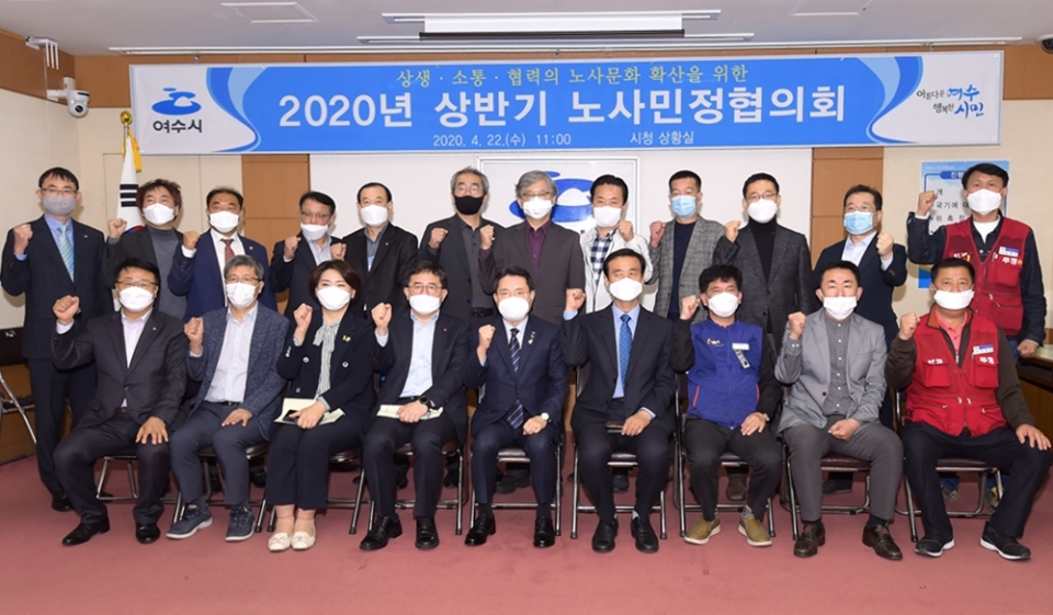 여수시 노사민정협의회가 22일 시청 상황실에서 상반기 회의를 열고 상생협력을 다짐했다.